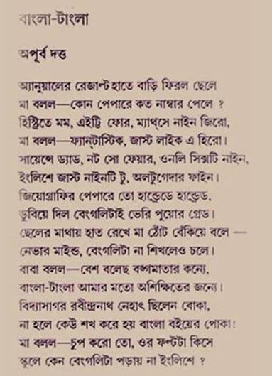 Bengal and the trend of ignoring Bengali Language Bangla Kabita Online - Read this poem and please try to understand the meaning of the same.We shouldn't ignore Bengali Language which is out mother toungue.
