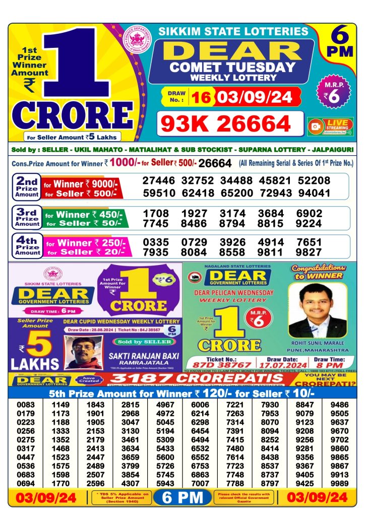 Lottery Sambad Result Today, September 03, 2024, 1 PM, 6 PM, 8 PM Draws, Live