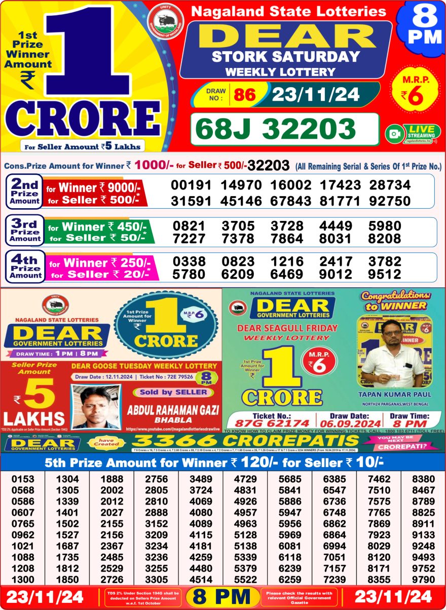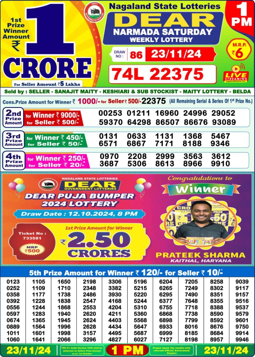 conducted by the Nagaland State Lottery. It includes daily draws at 1 PM, 6