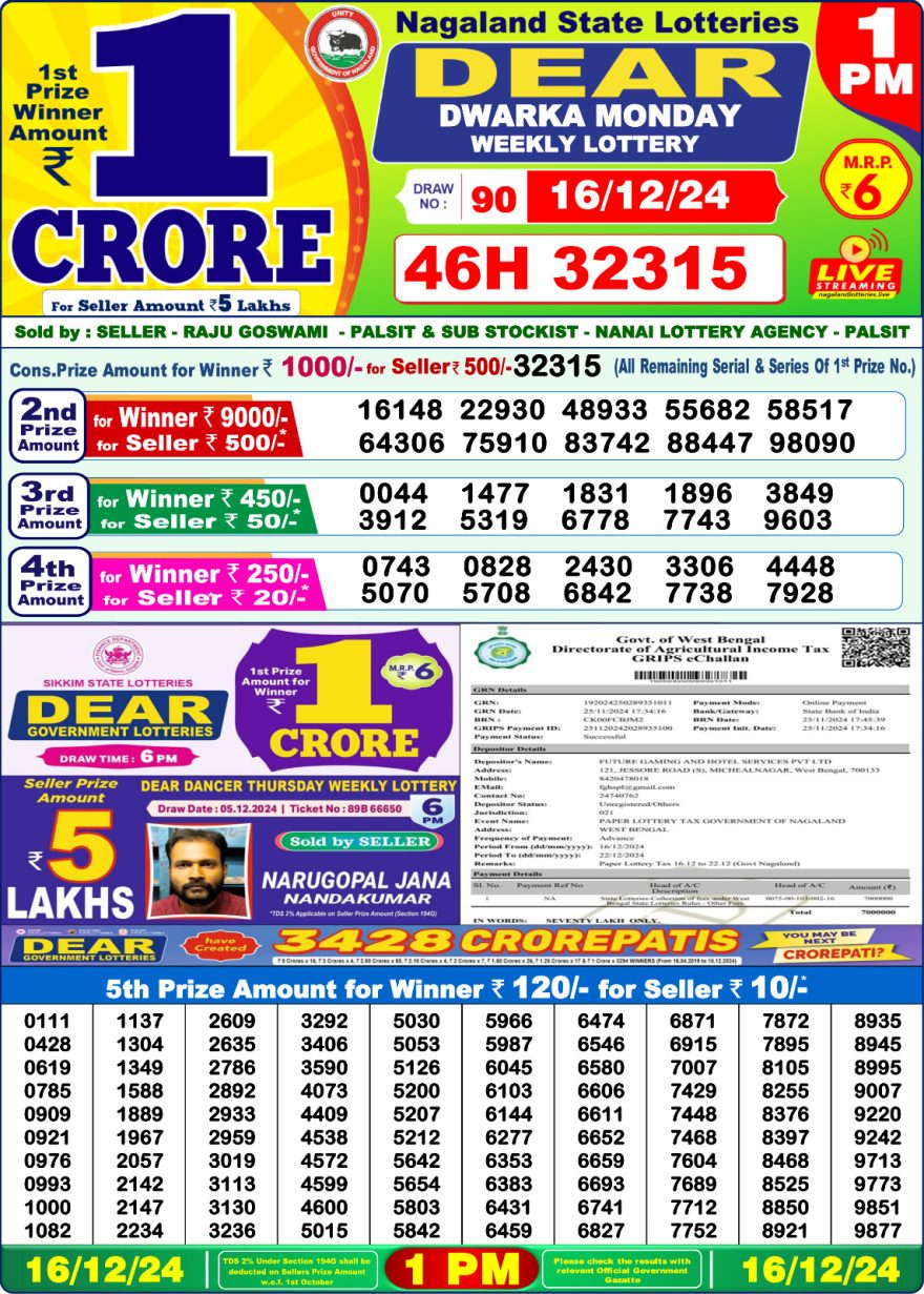 - 1 PM Draw: Nagaland State Lottery Results