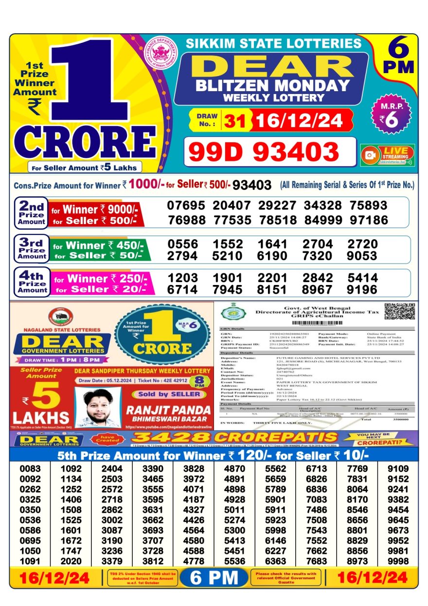 Lottery Sambad Result Today, December 16, 2024, 1 PM, 6 PM, 8 PM Draws, Live