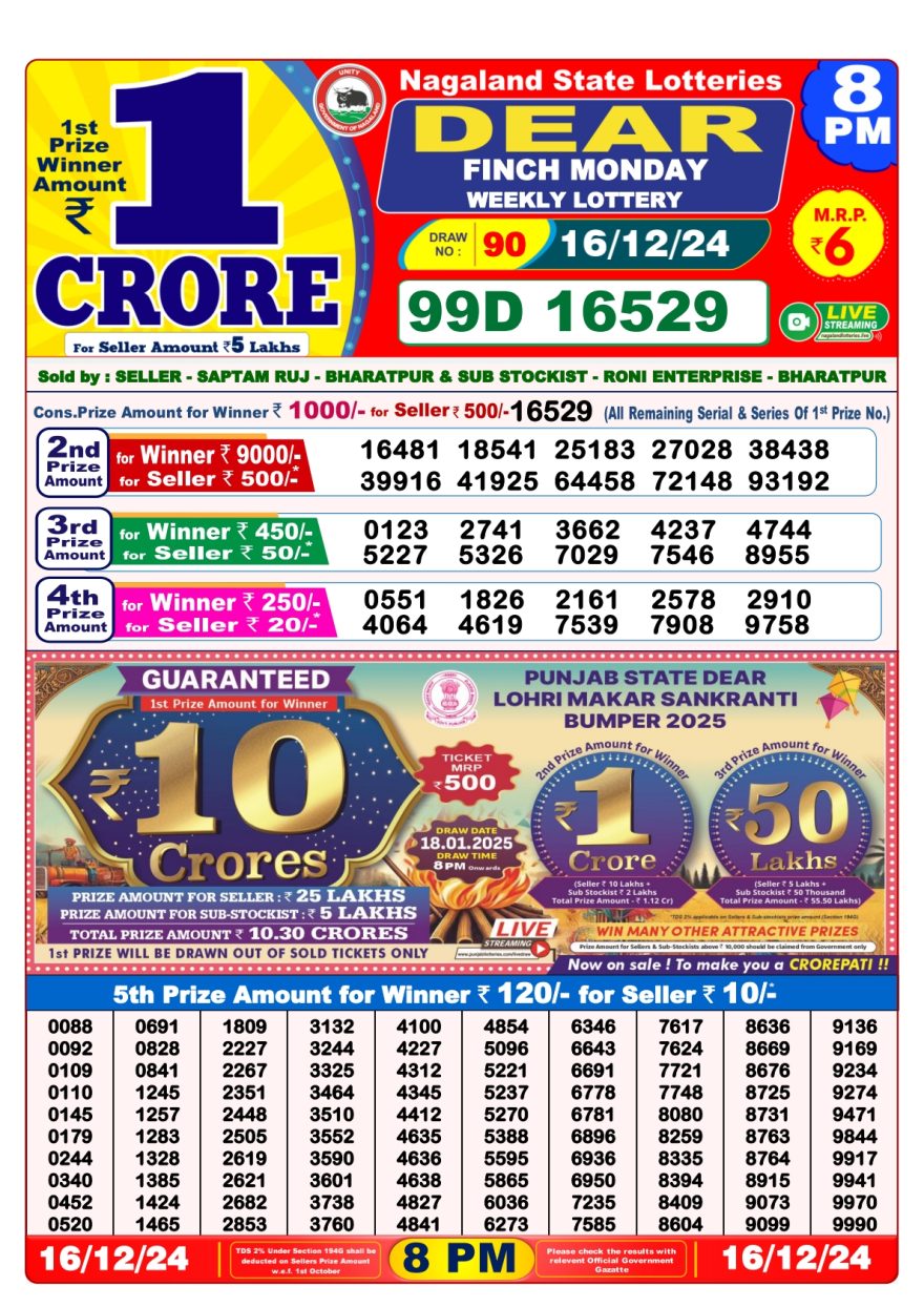 - 6 PM Draw: Nagaland State Lottery Results