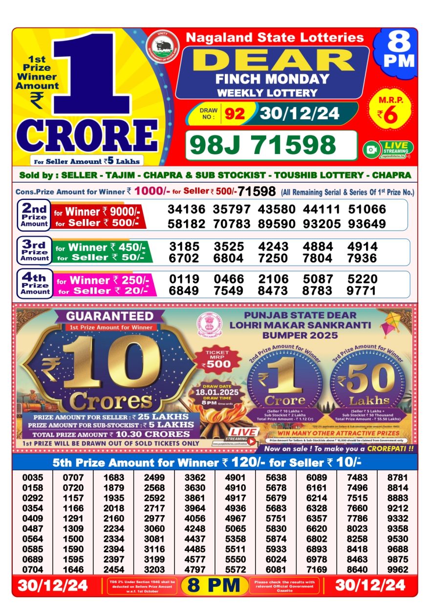 conducted by the Nagaland State Lottery. It includes daily draws at 1 PM, 6