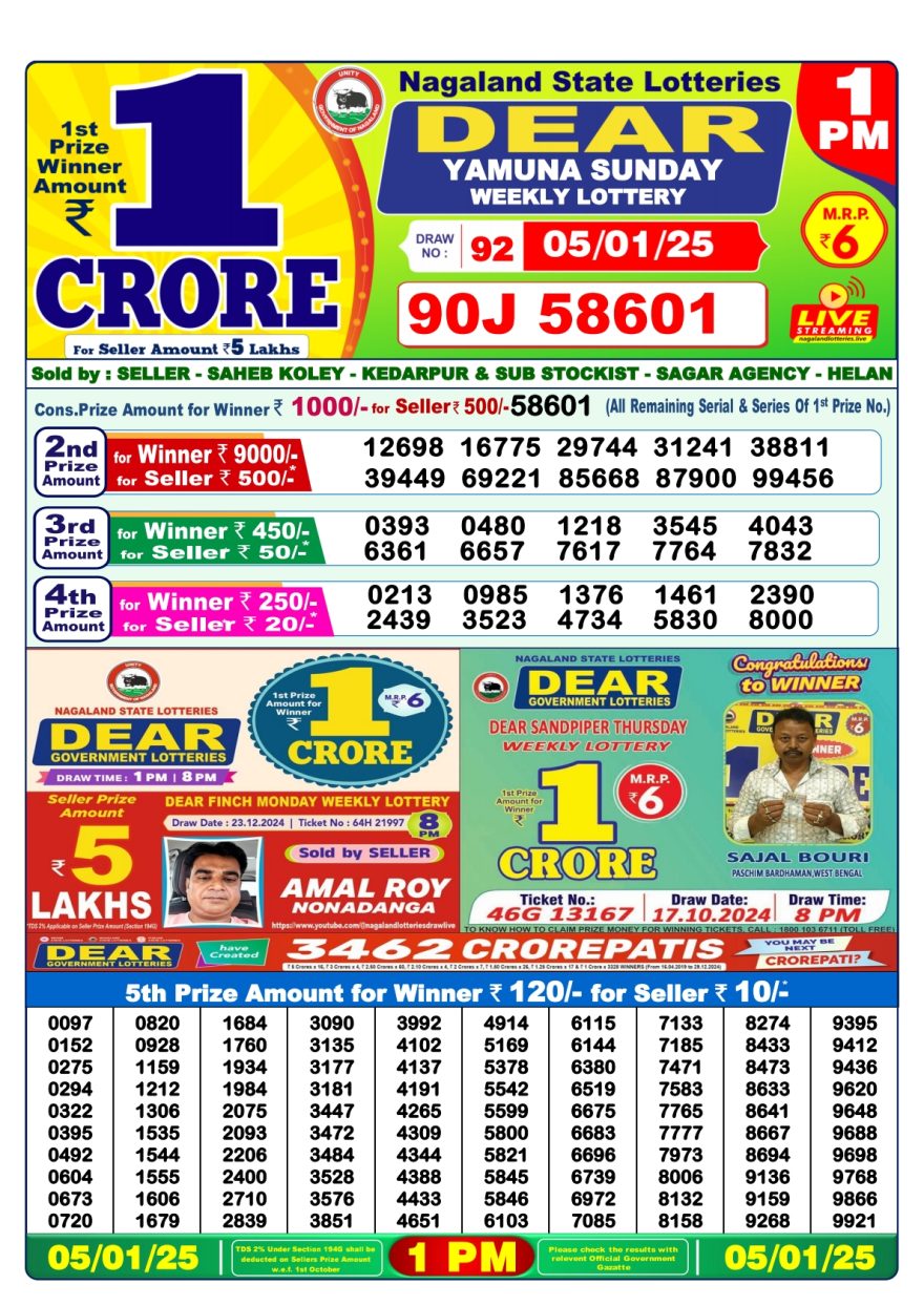 - 1 PM Draw: Nagaland State Lottery Results