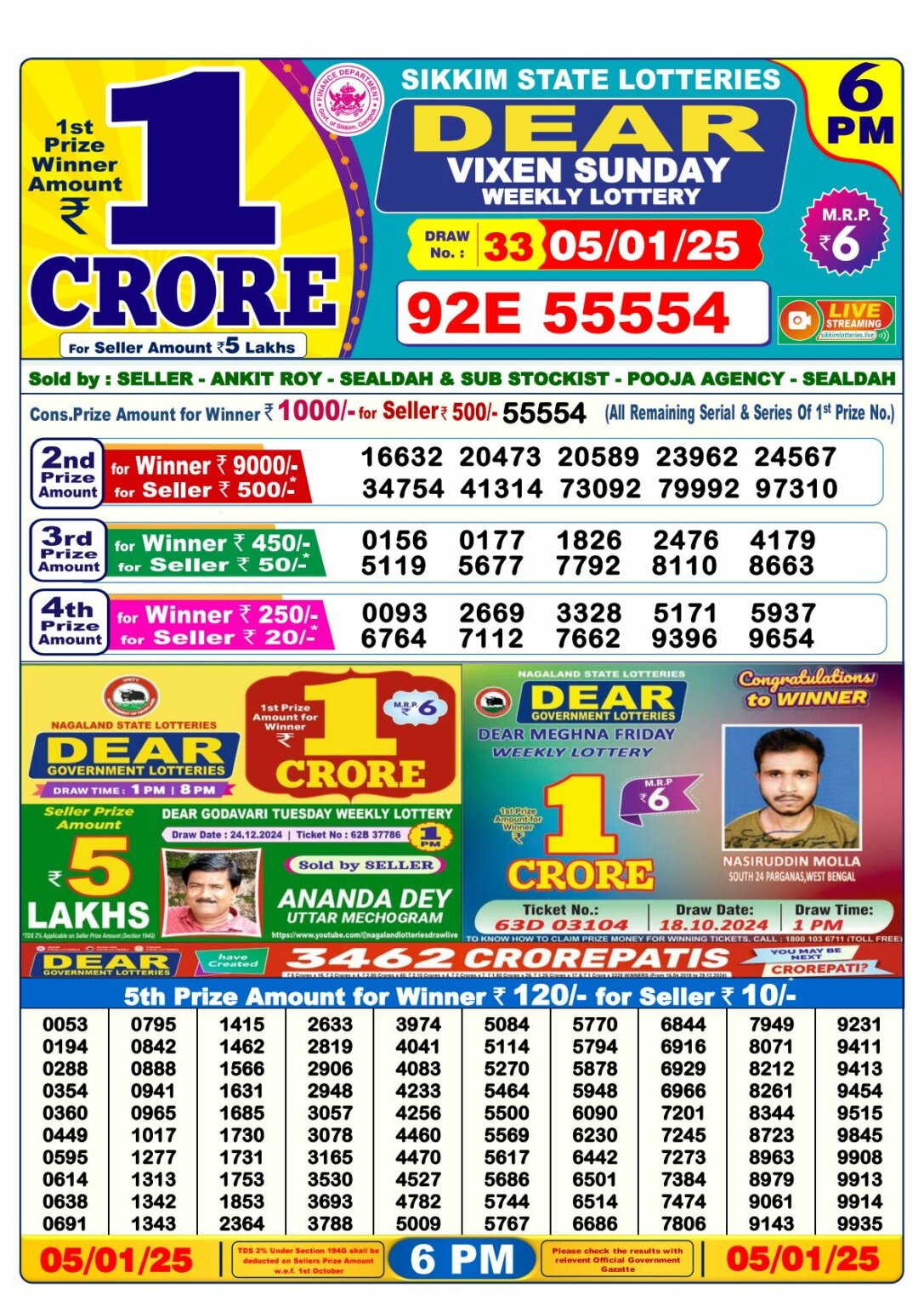 Sunday Lottery Result 2025 – 6 PM Draw