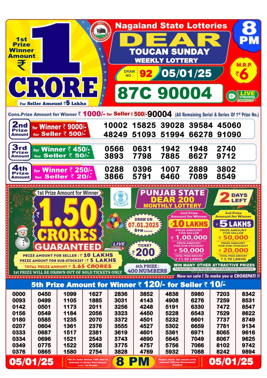 - 8 PM Draw: Nagaland State Lottery Results