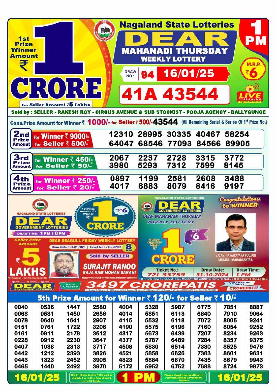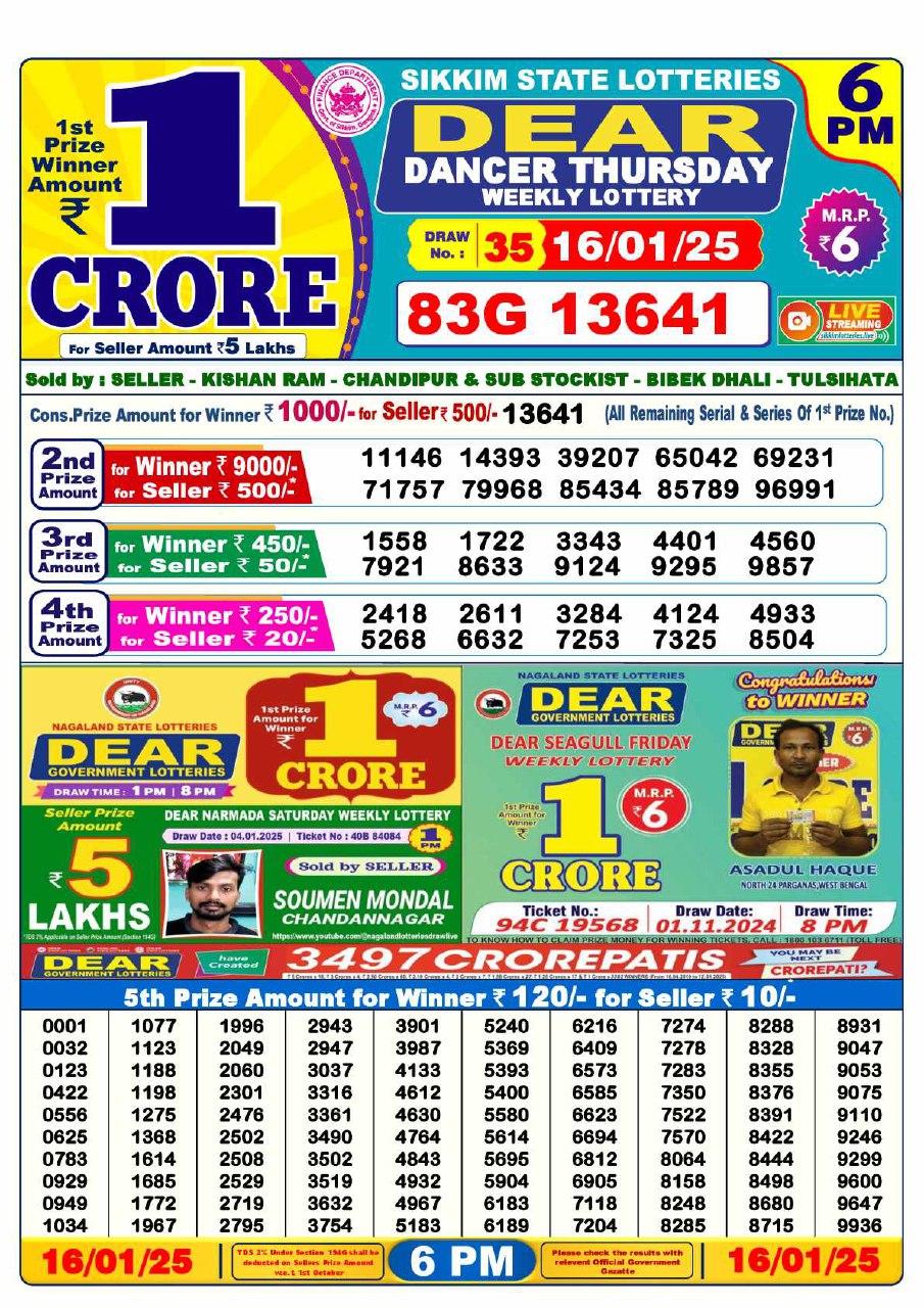 Lottery Sambad Result Today, January 16, 2025, 1 PM, 6 PM, 8 PM Draws, Live