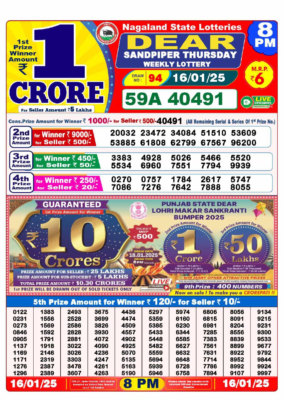 conducted by the Nagaland State Lottery. It includes daily draws at 1 PM, 6