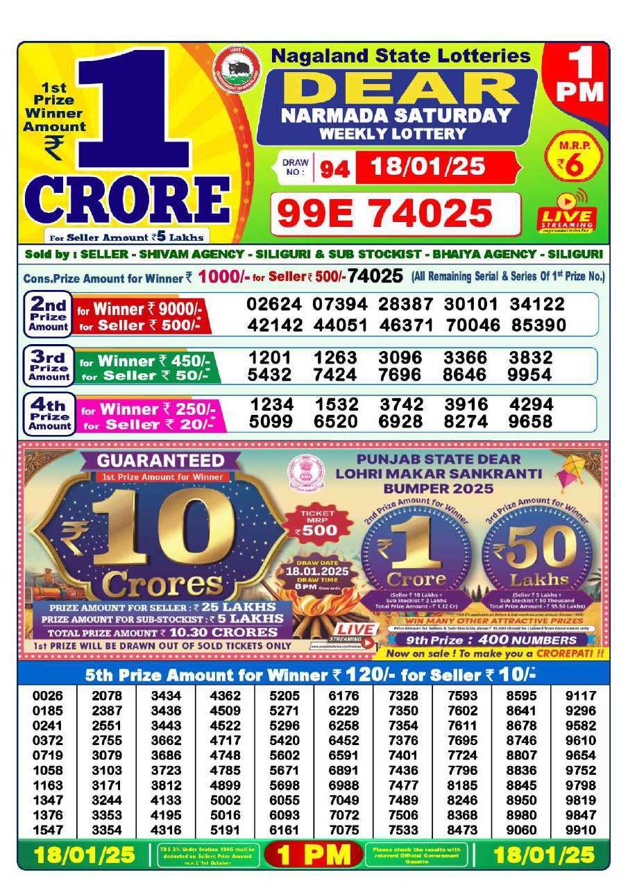 - 1 PM Draw: Nagaland State Lottery Results