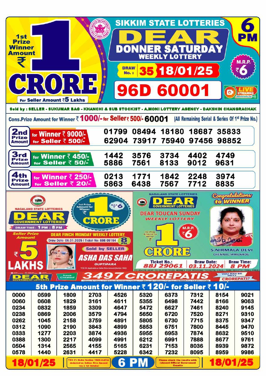 Saturday Lottery Result 2025 – 6 PM Draw