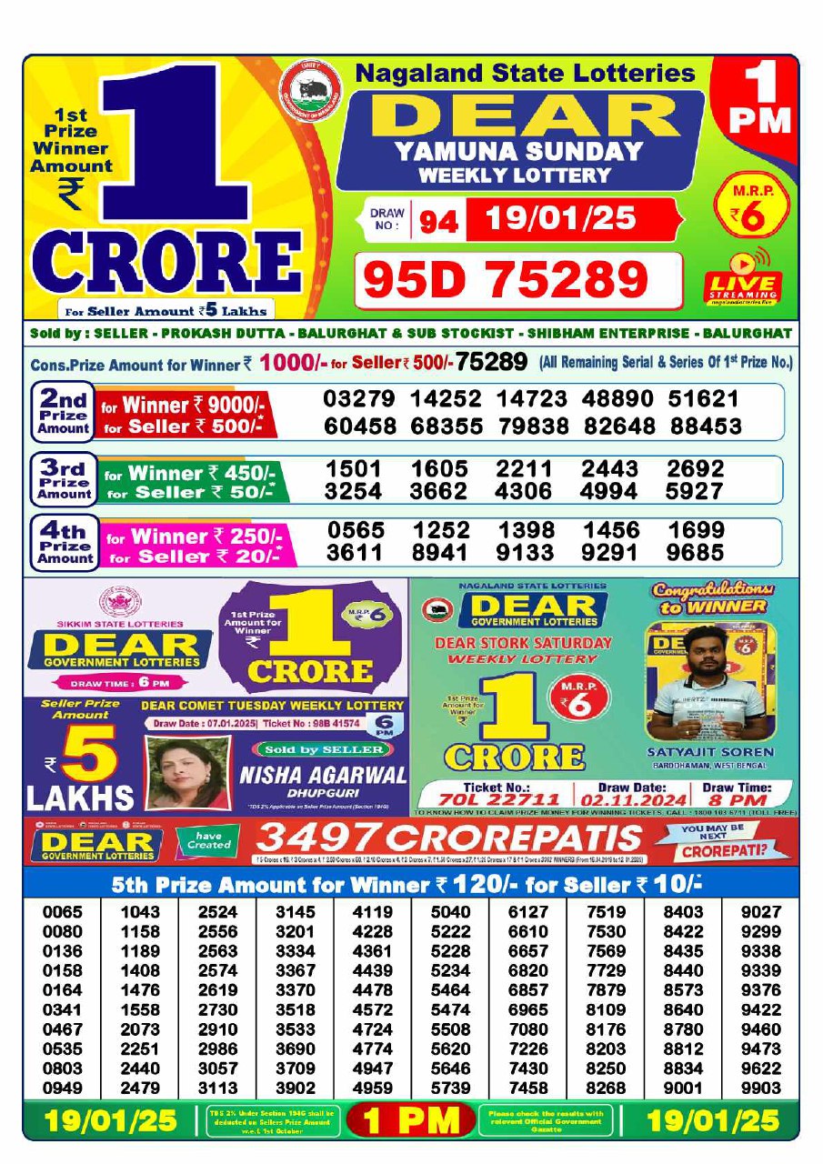 conducted by the Nagaland State Lottery. It includes daily draws at 1 PM, 6
