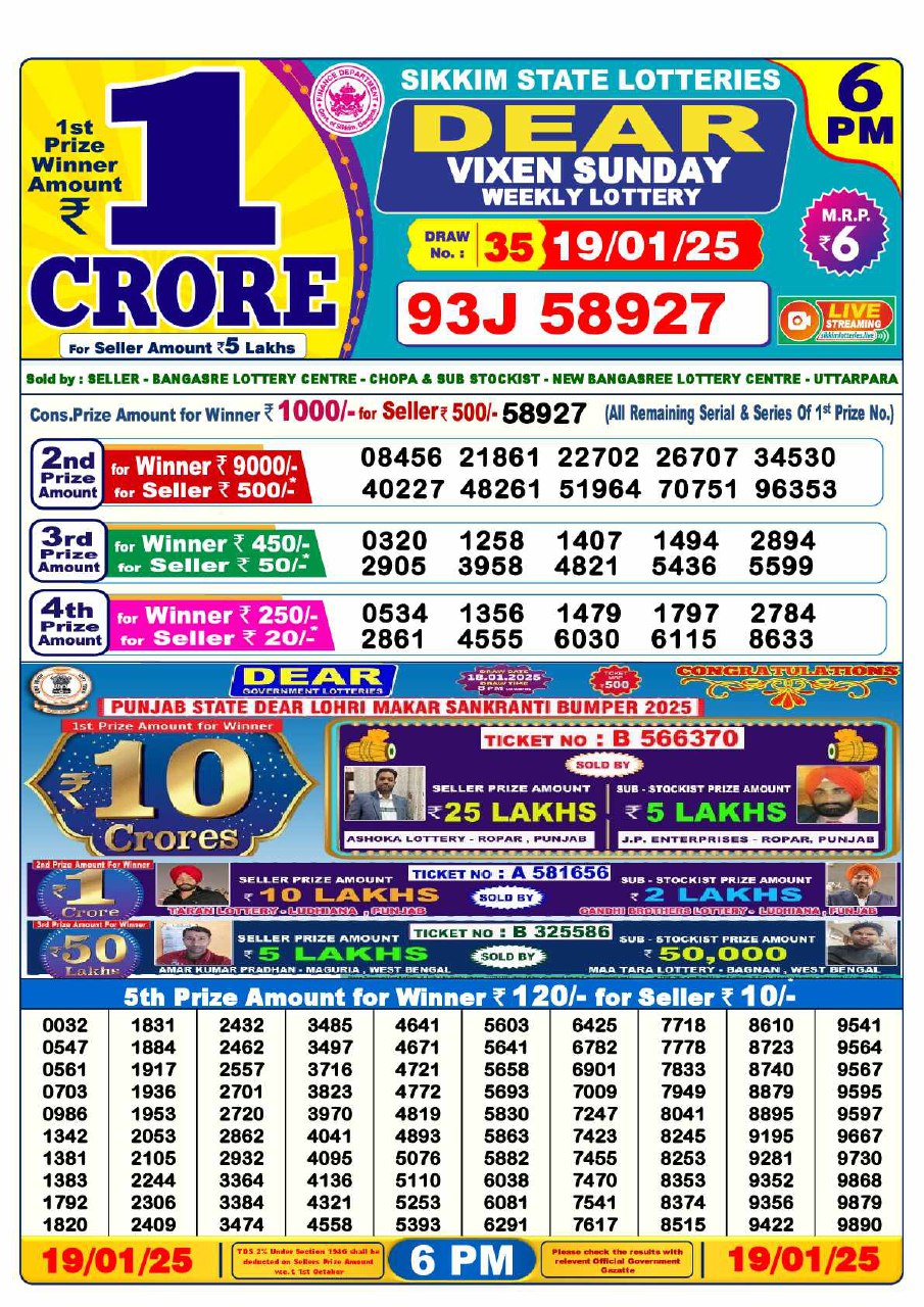 Lottery Sambad Result Today, January 19, 2025, 1 PM, 6 PM, 8 PM Draws, Live