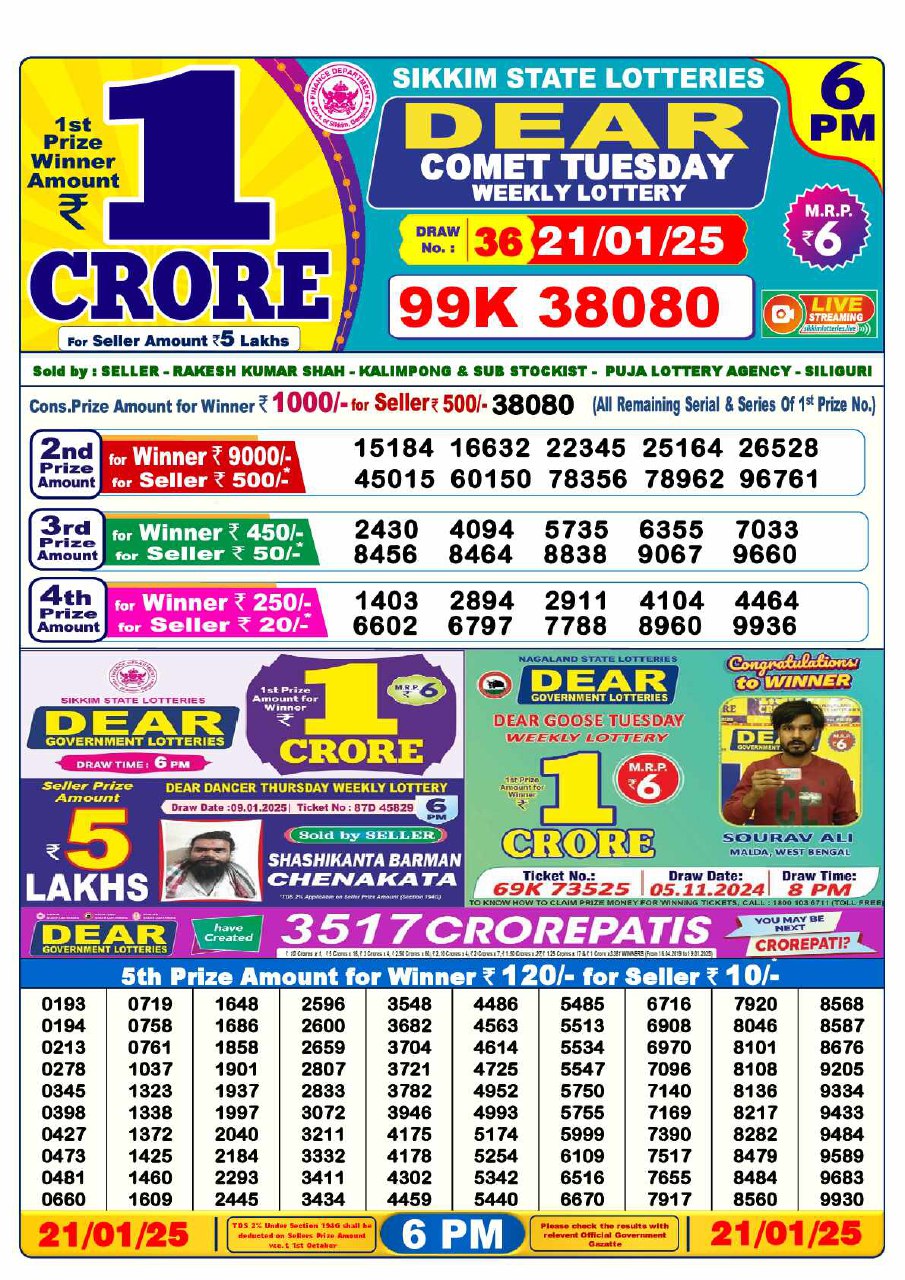 Lottery Sambad Result Today, January 21, 2025, 1 PM, 6 PM, 8 PM Draws, Live