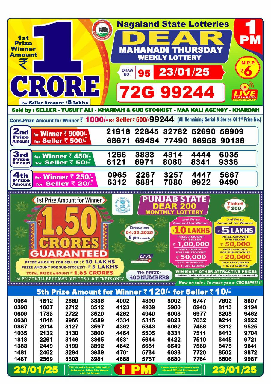 - 1 PM Draw: Nagaland State Lottery Results