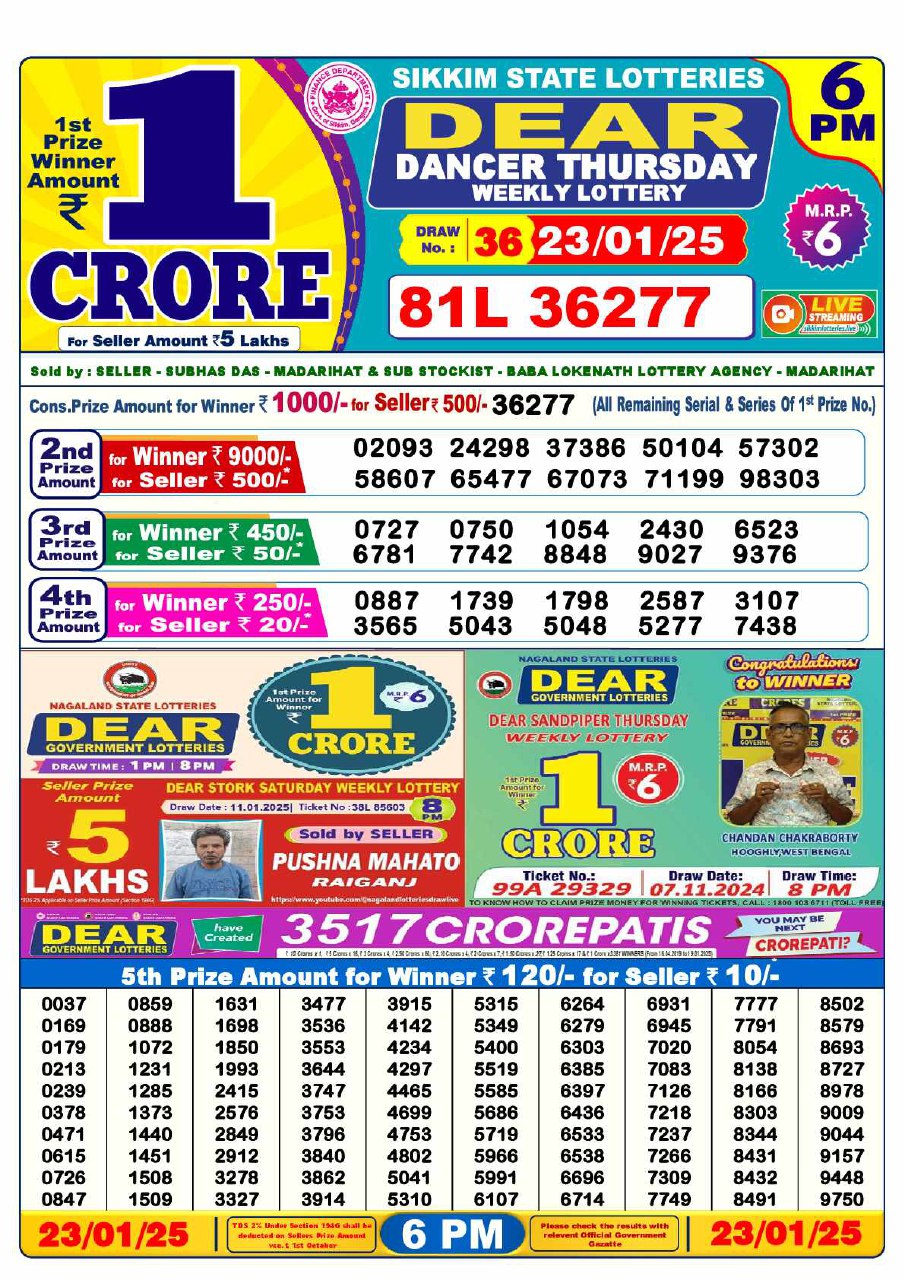 - 6 PM Draw: Nagaland State Lottery Results
