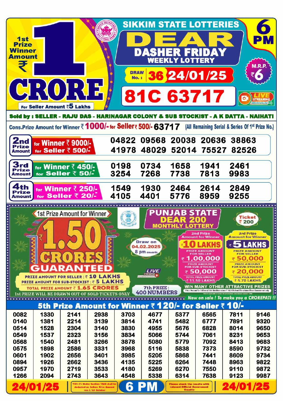 Friday Lottery Result 2025 – 6 PM Draw