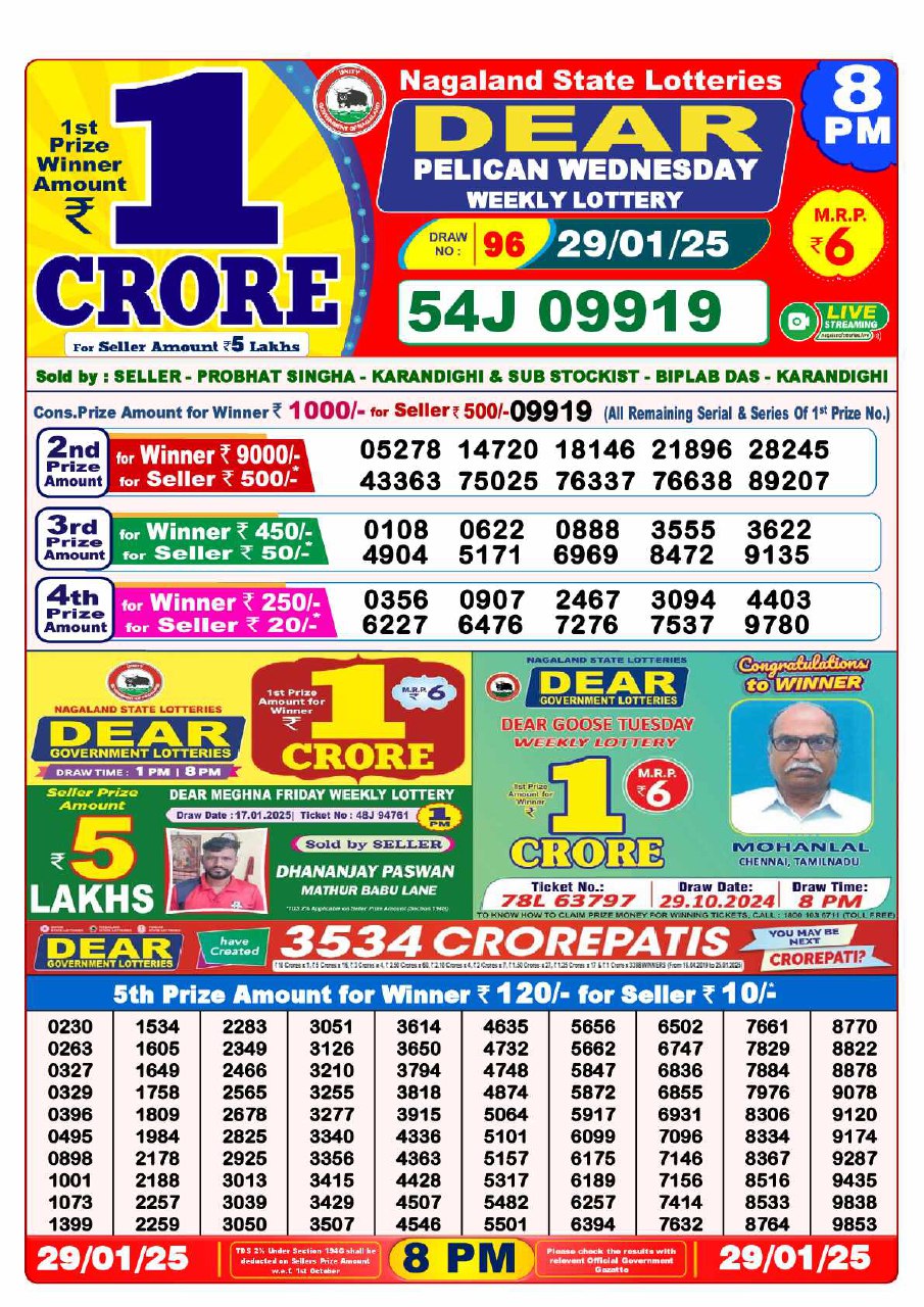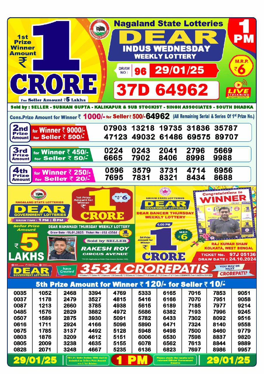 conducted by the Nagaland State Lottery. It includes daily draws at 1 PM, 6