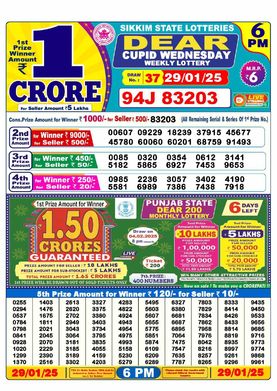 Lottery Sambad Result Today, January 29, 2025, 1 PM, 6 PM, 8 PM Draws, Live