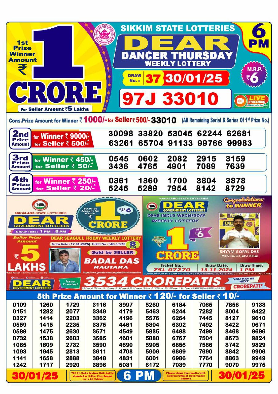 Thursday Lottery Result 2025 – 6 PM Draw