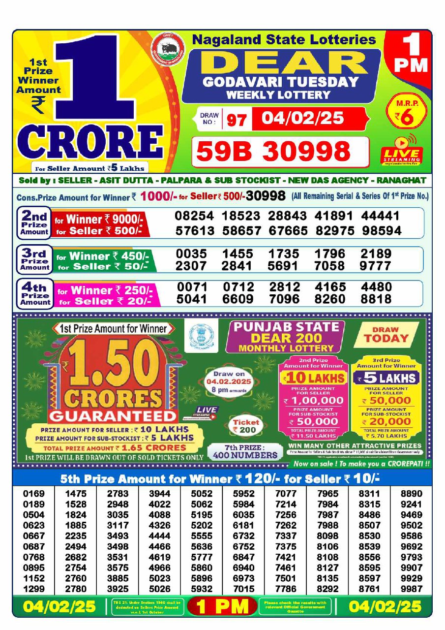 conducted by the Nagaland State Lottery. It includes daily draws at 1 PM, 6