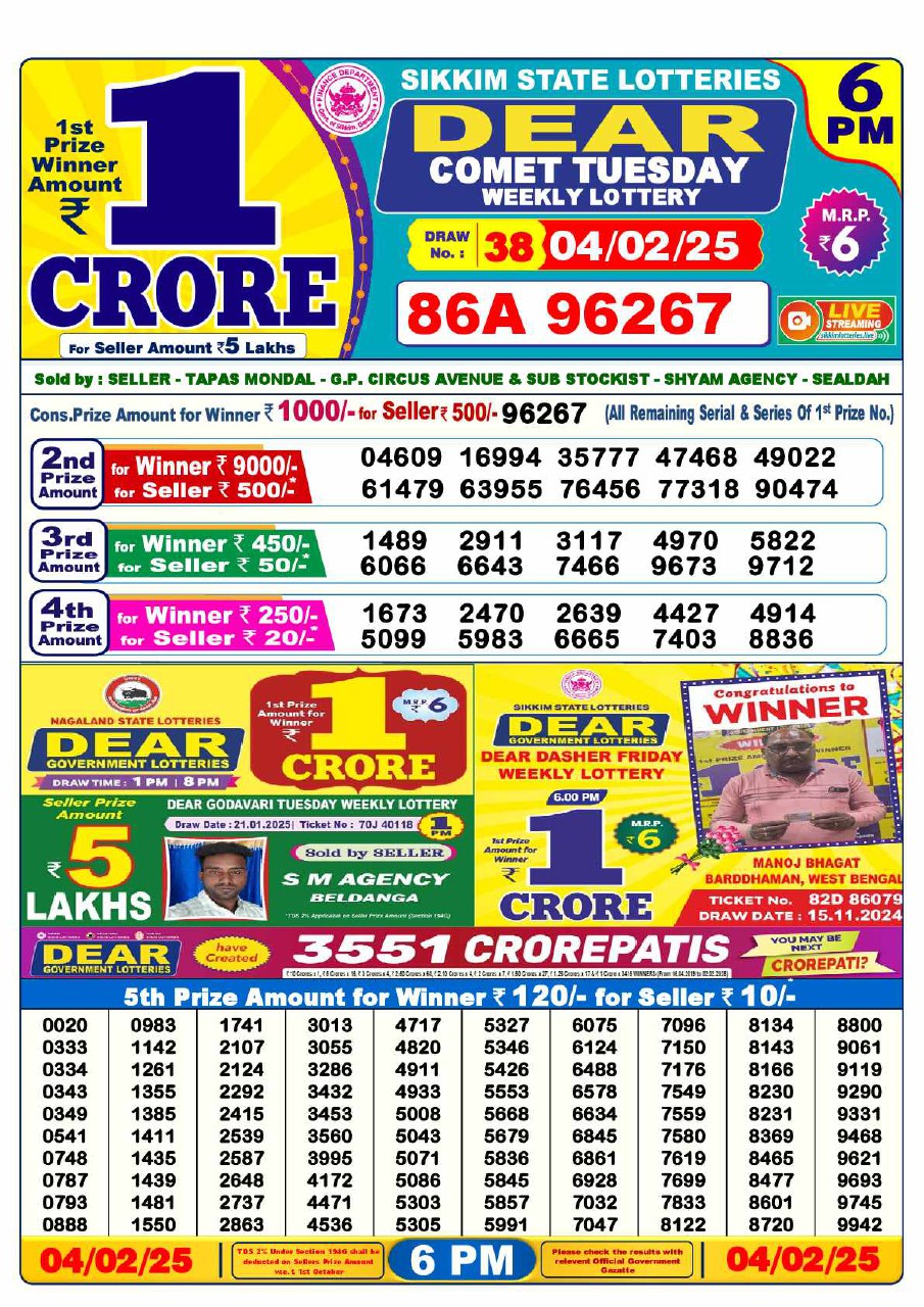 Tuesday Lottery Result 2025 – 6 PM Draw