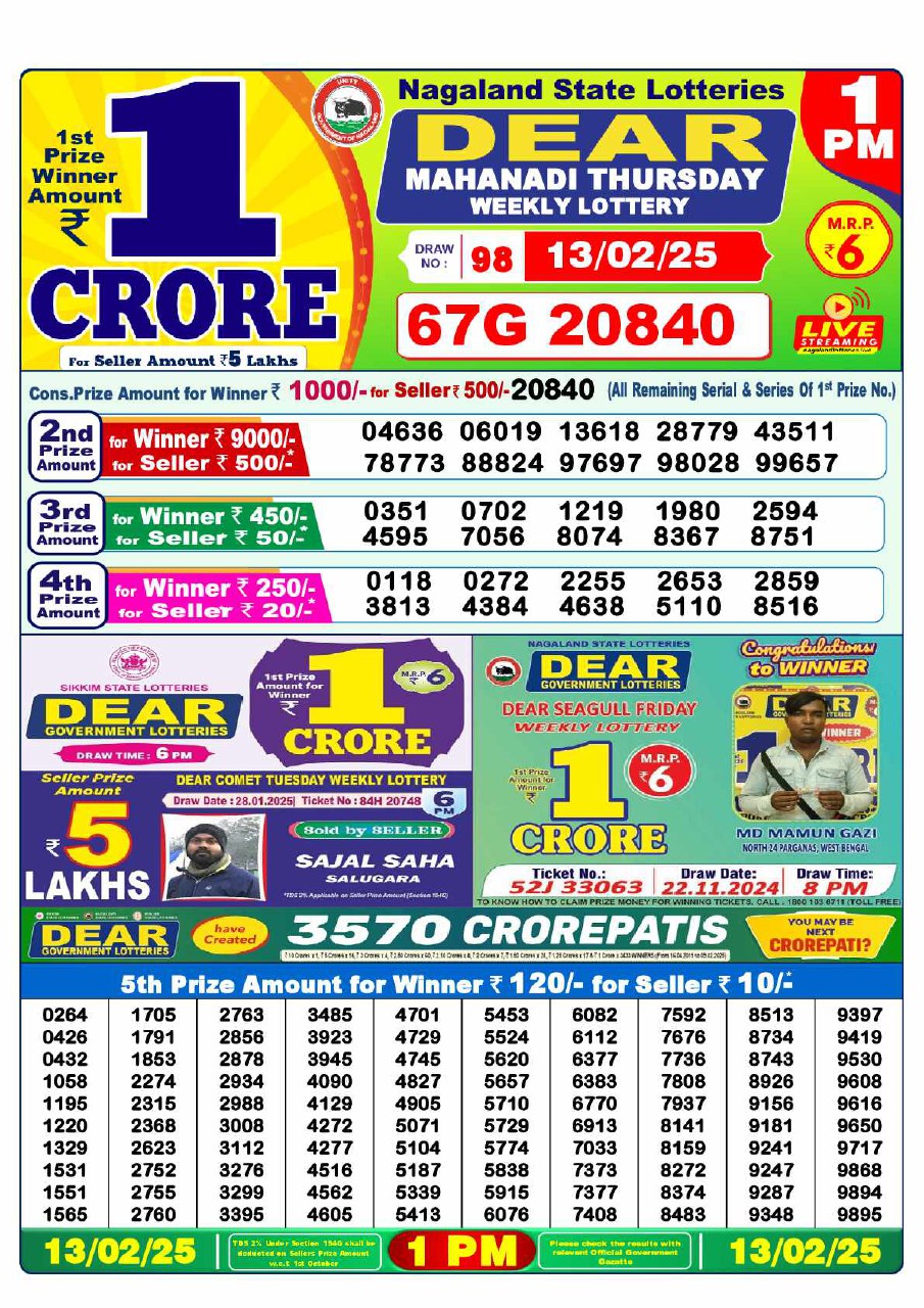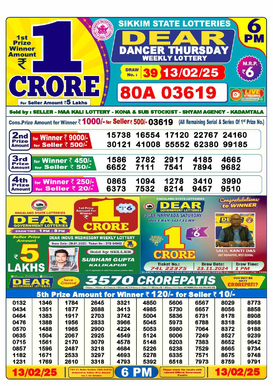 Lottery Sambad Result Today, February 13, 2025, 1 PM, 6 PM, 8 PM Draws, Live