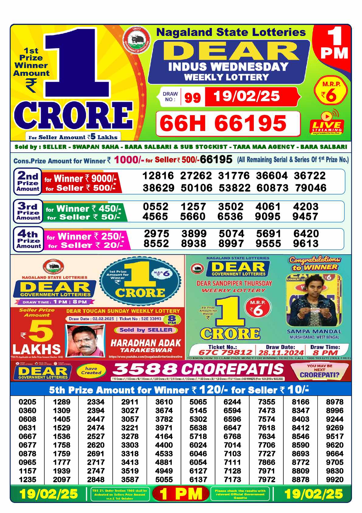 Lottery Sambad Result Today, February 19, 2025, 1 PM, 6 PM, 8 PM Draws, Live