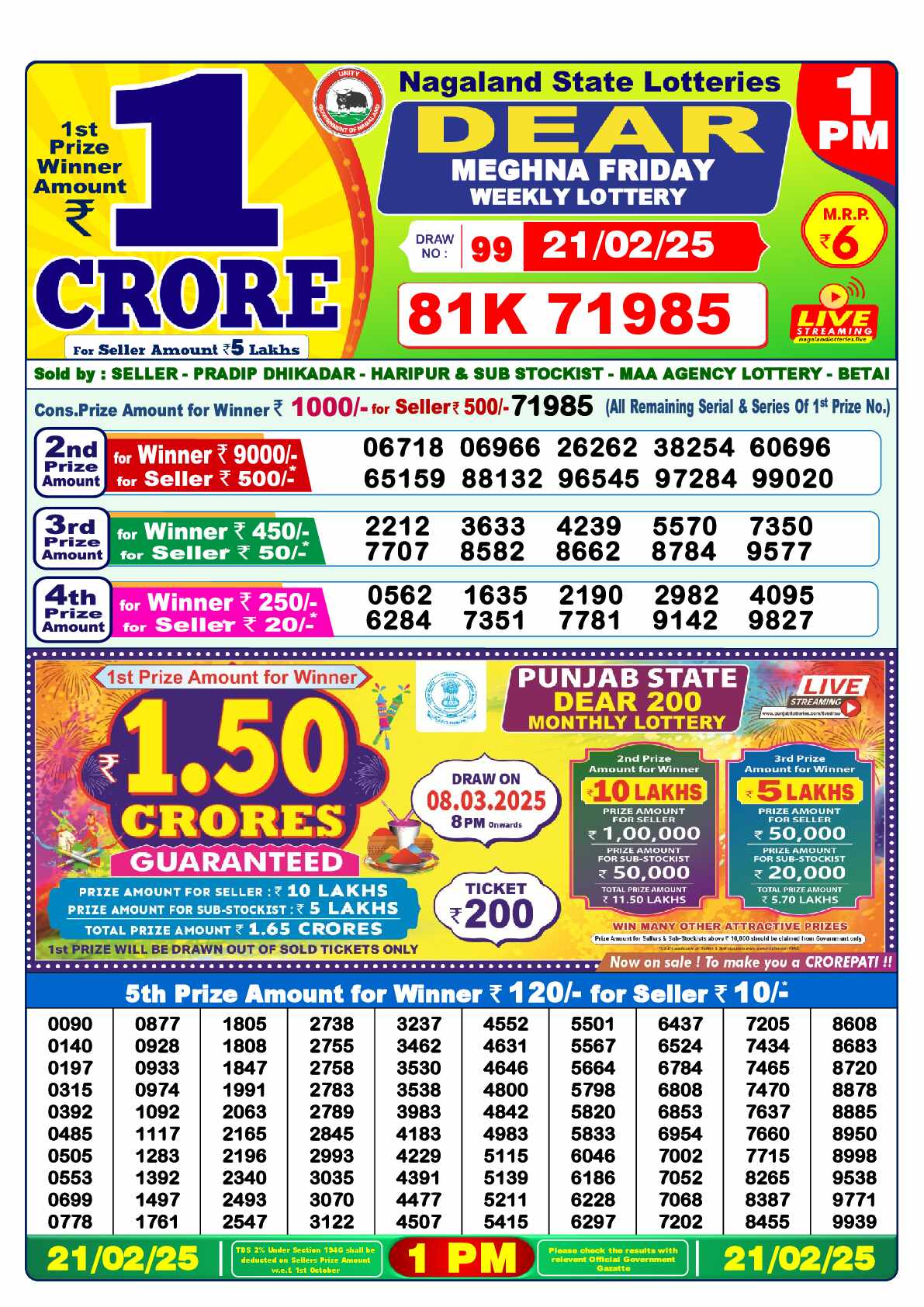 conducted by the Nagaland State Lottery. It includes daily draws at 1 PM, 6