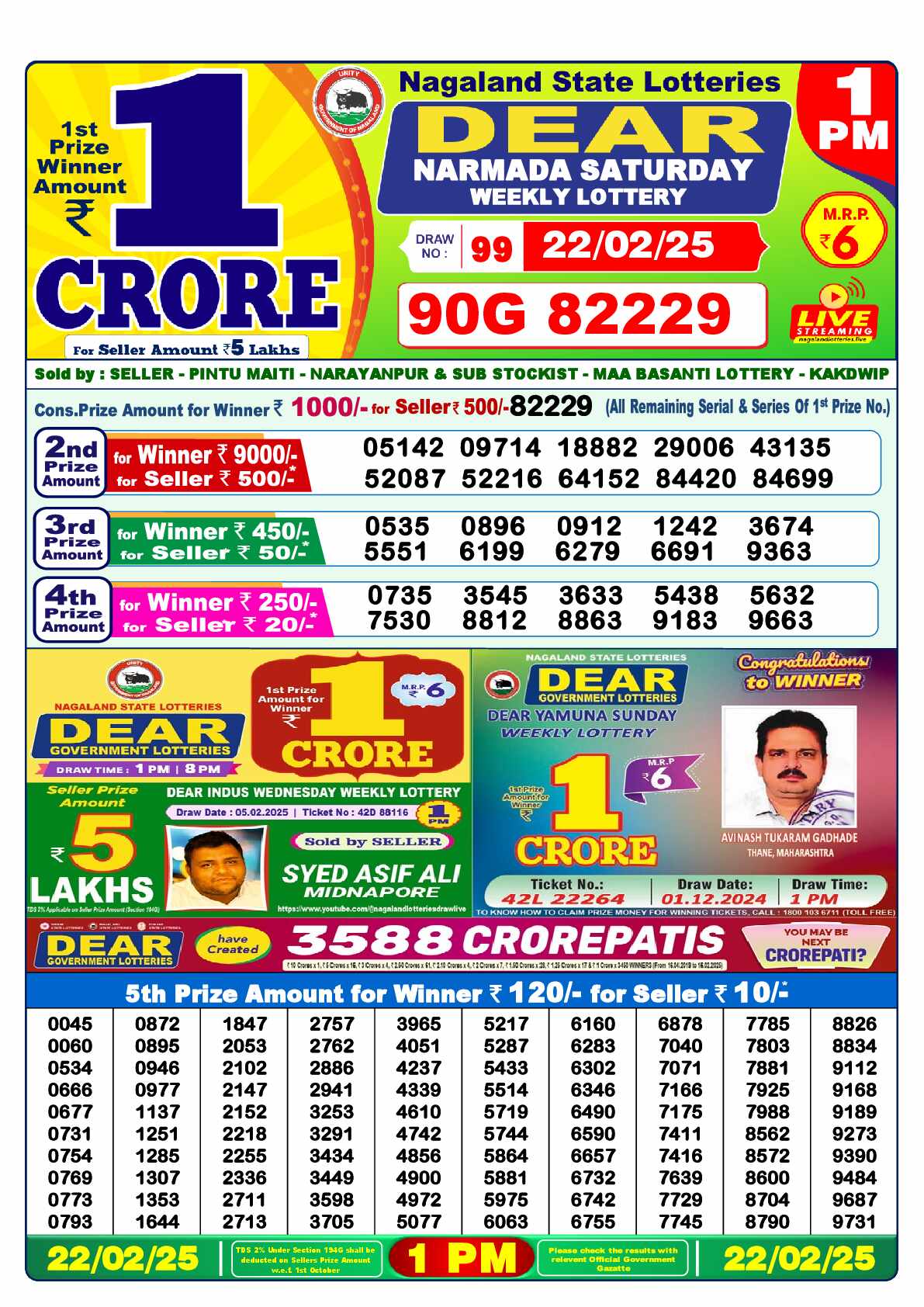 conducted by the Nagaland State Lottery. It includes daily draws at 1 PM, 6