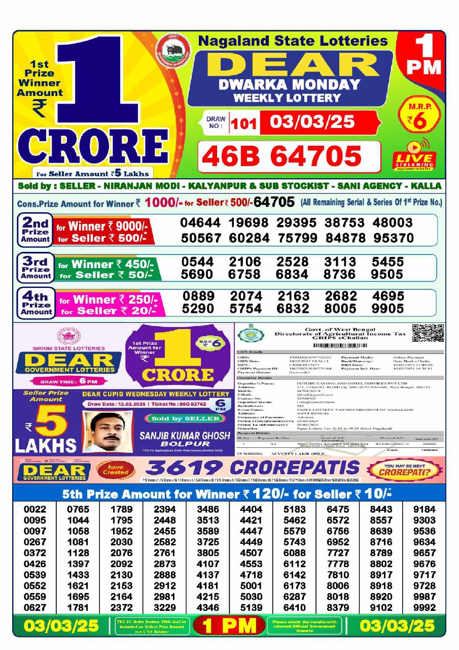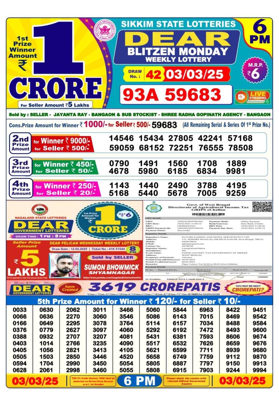 Lottery Sambad Result Today, March 03, 2025, 1 PM, 6 PM, 8 PM Draws, Live