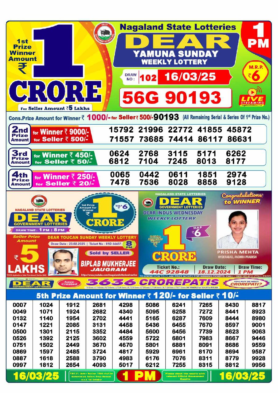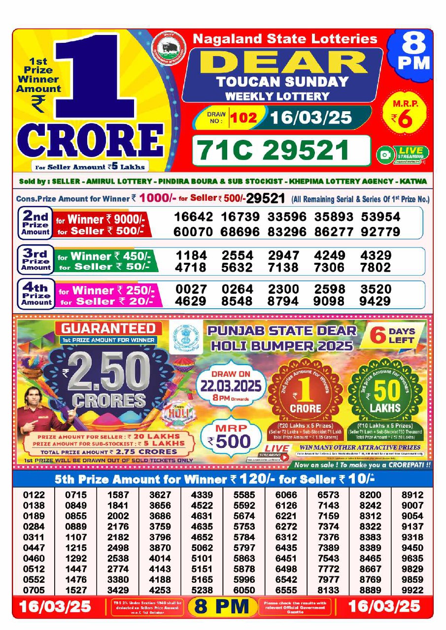 conducted by the Nagaland State Lottery. It includes daily draws at 1 PM, 6