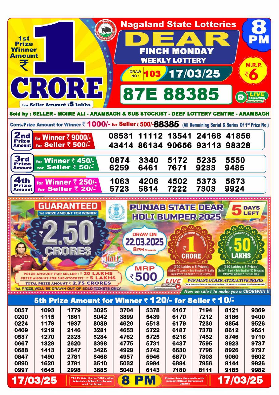 Lottery Sambad Result Today, March 17, 2025, 1 PM, 6 PM, 8 PM Draws, Live