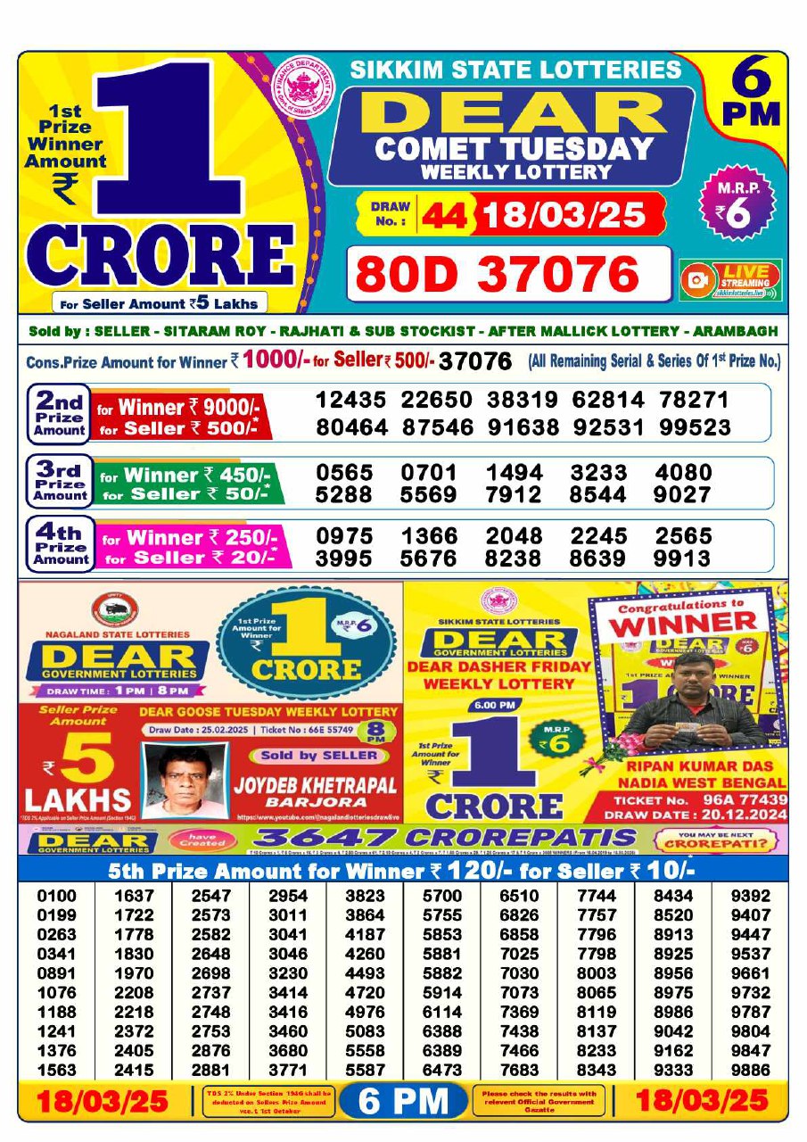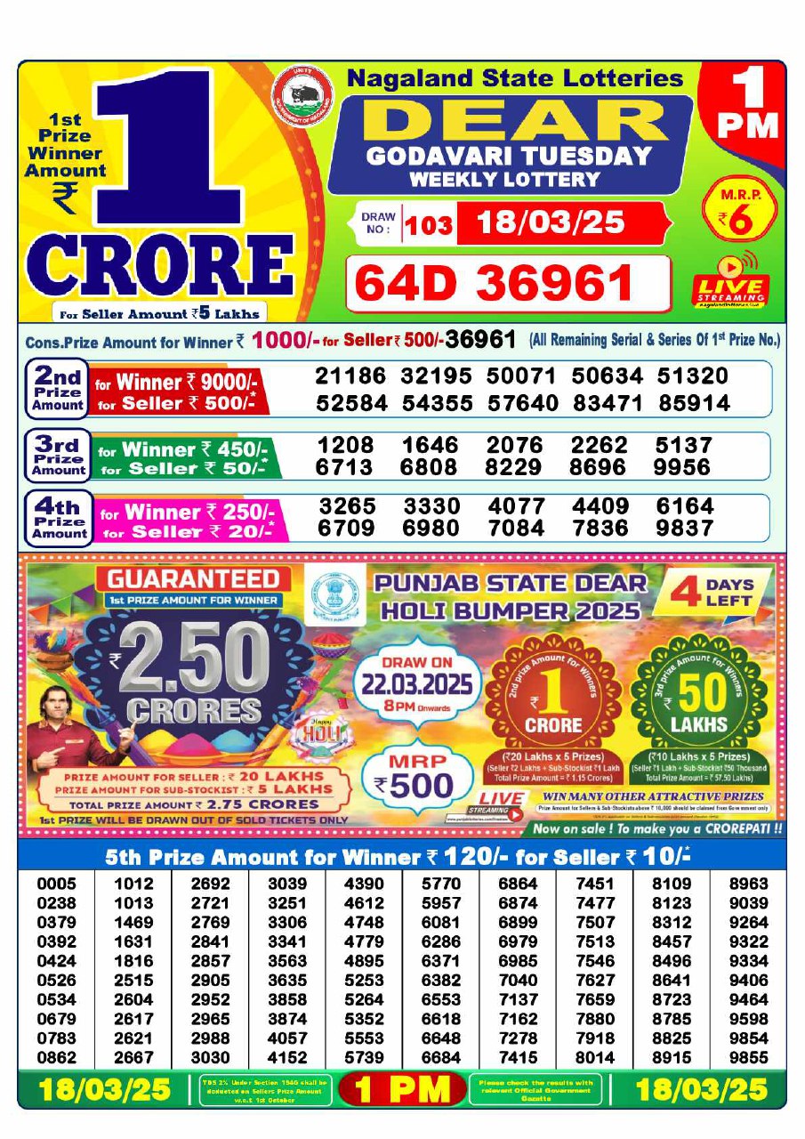 Lottery Sambad Result Today, March 18, 2025, 1 PM, 6 PM, 8 PM Draws, Live