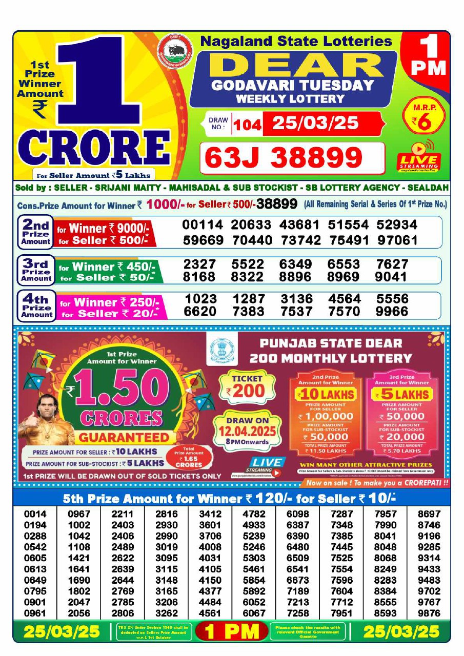 - 1 PM Draw: Nagaland State Lottery Results