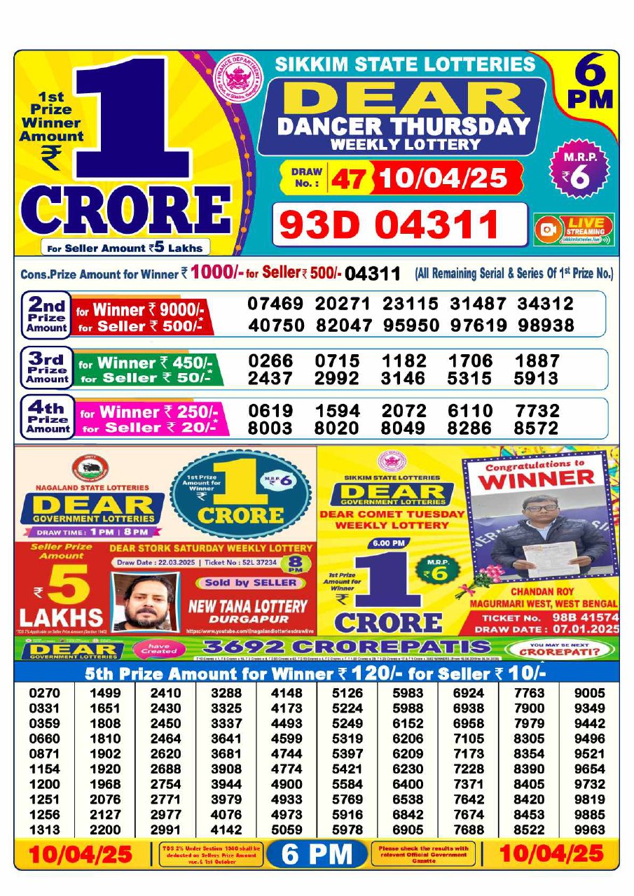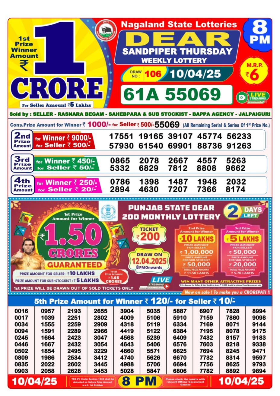 Lottery Sambad Result Today, April 10, 2025, 1 PM, 6 PM, 8 PM Draws, Live