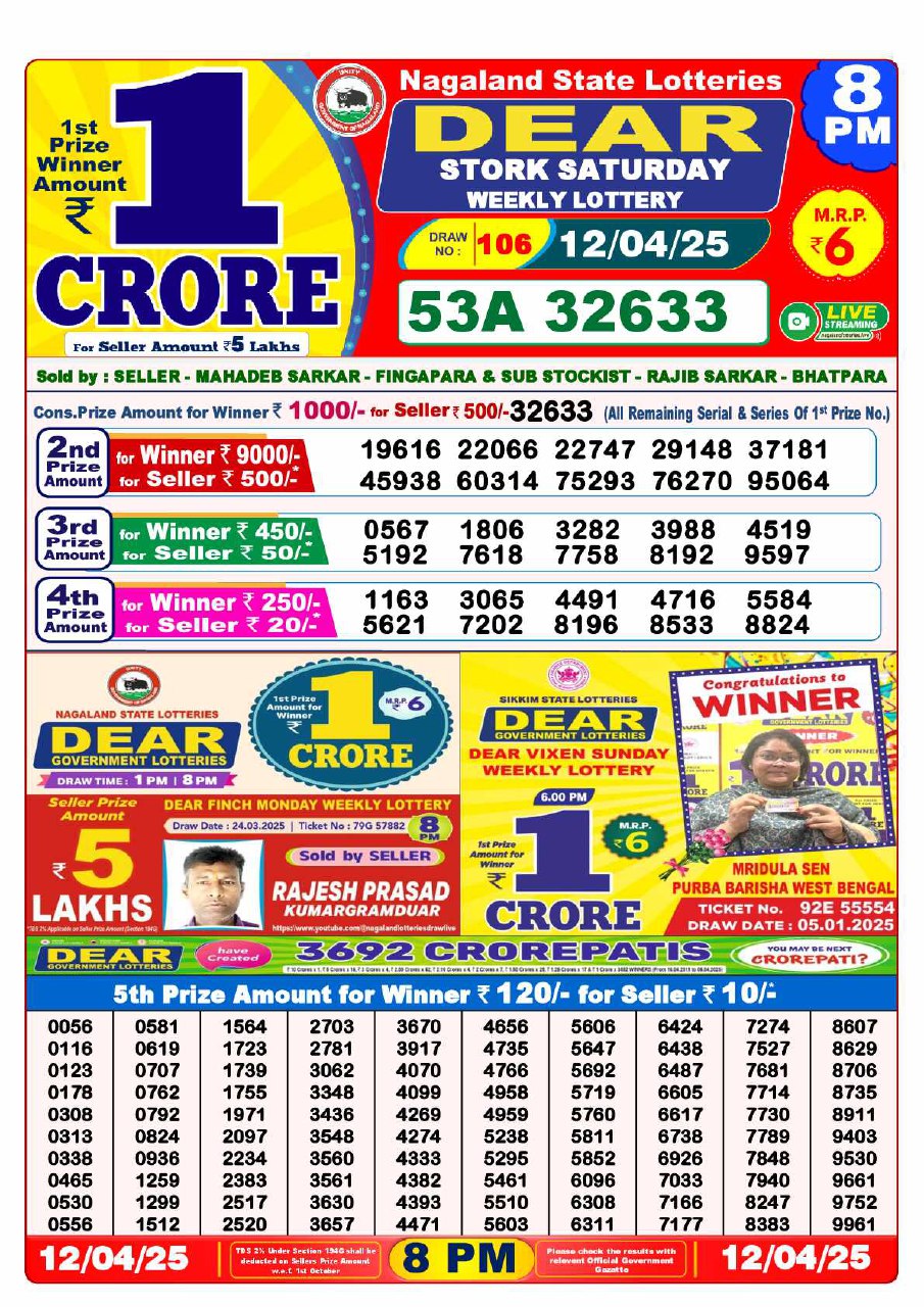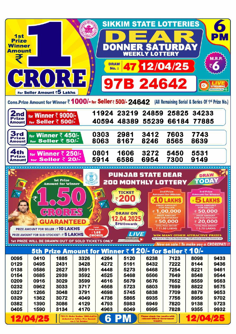 Lottery Sambad Result Today, April 12, 2025, 1 PM, 6 PM, 8 PM Draws, Live