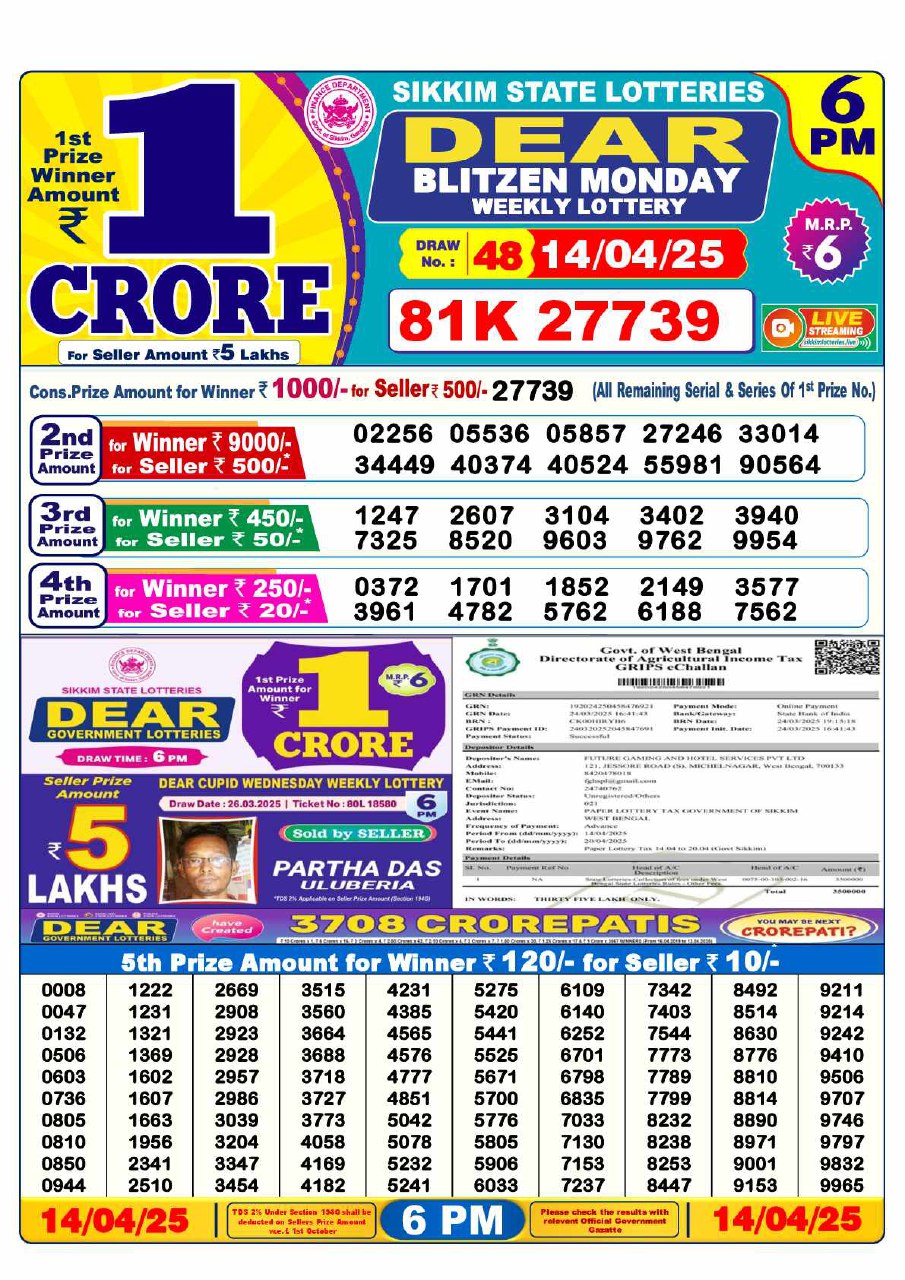 Lottery Sambad Result Today, April 14, 2025, 1 PM, 6 PM, 8 PM Draws, Live