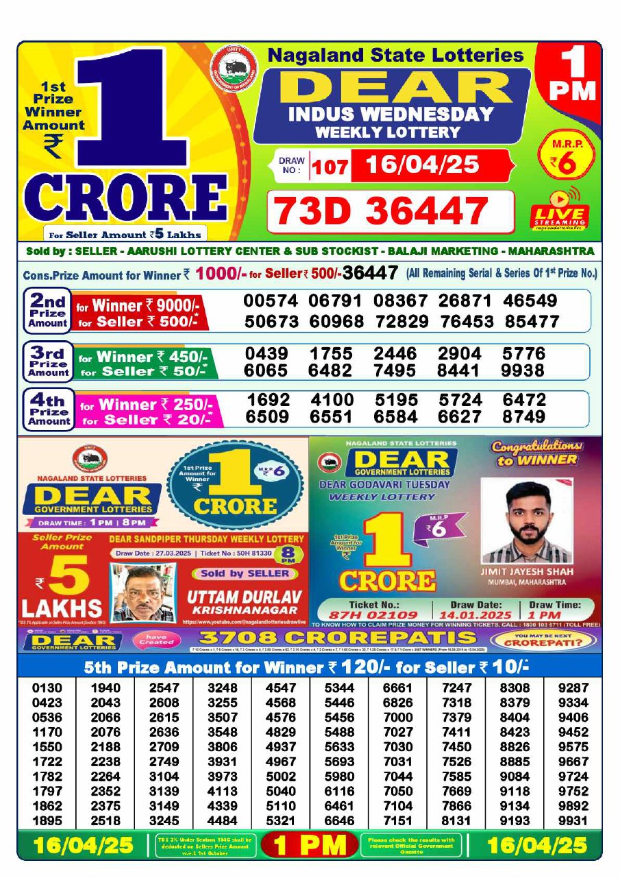 - 1 PM Draw: Nagaland State Lottery Results