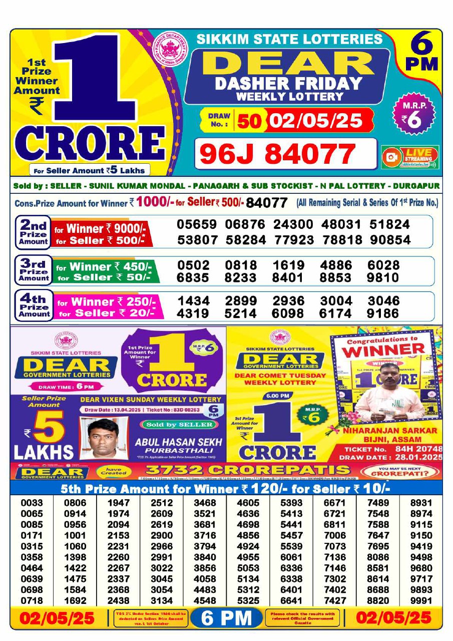 Lottery Sambad Result Today, May 02, 2025, 1 PM, 6 PM, 8 PM Draws, Live
