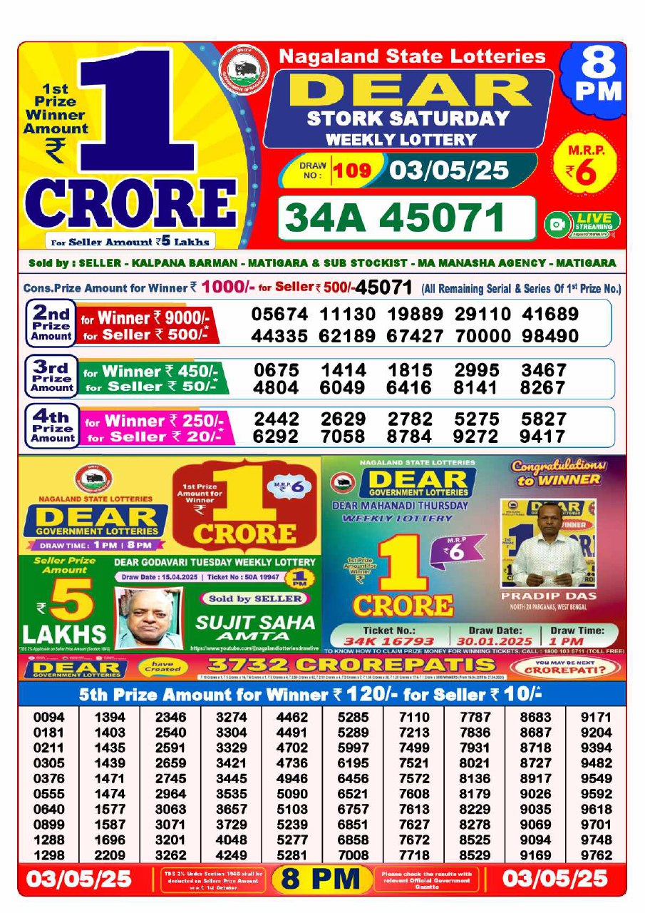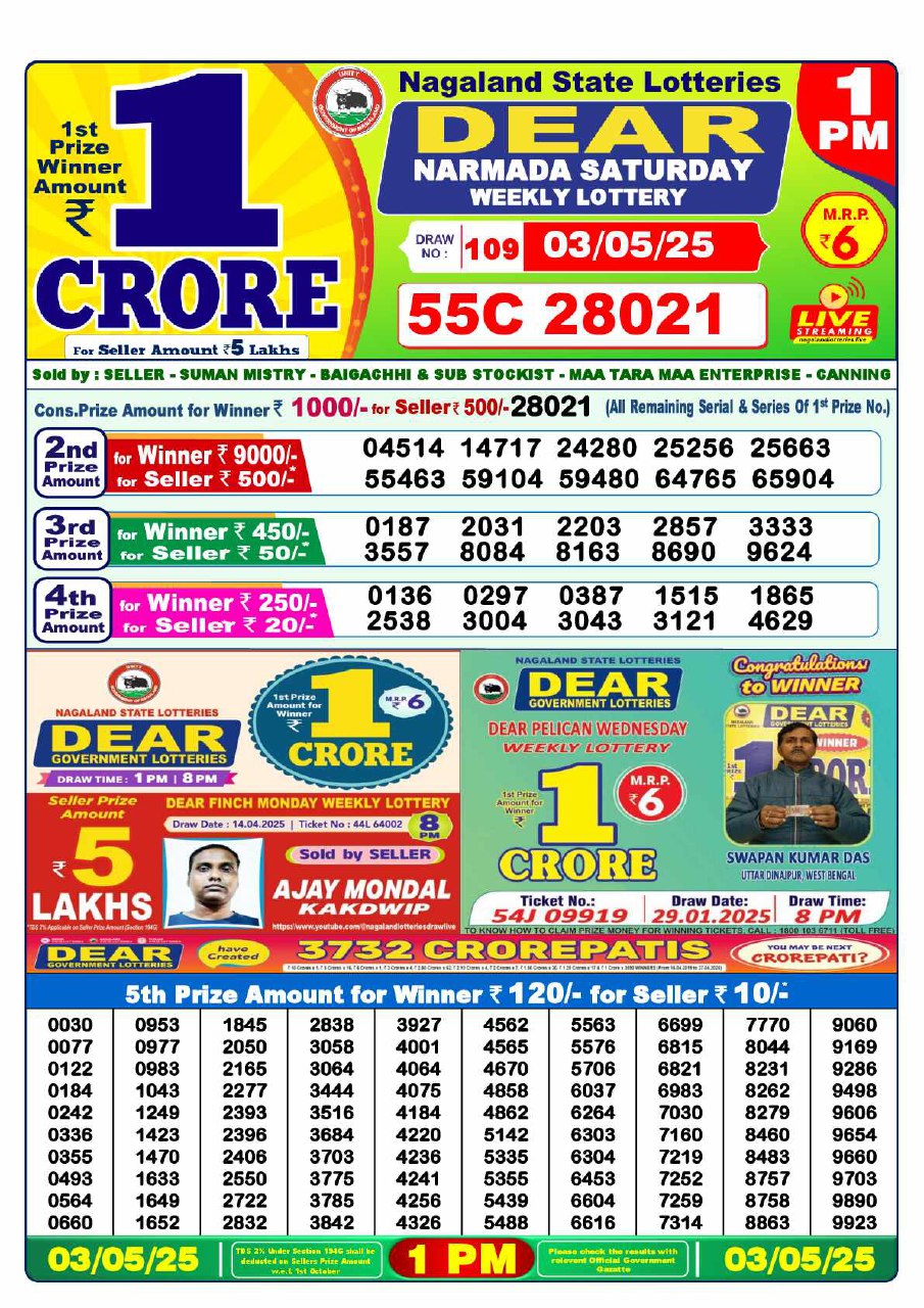 conducted by the Nagaland State Lottery. It includes daily draws at 1 PM, 6
