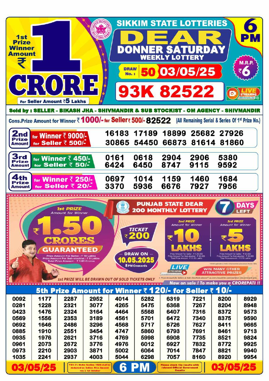 Lottery Sambad Result Today, May 03, 2025, 1 PM, 6 PM, 8 PM Draws, Live