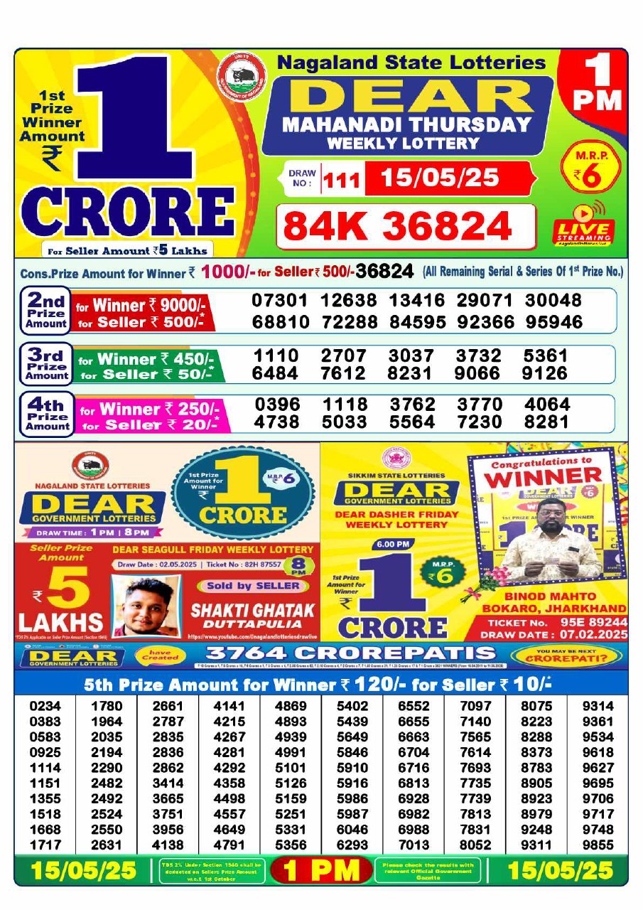 - 1 PM Draw: Nagaland State Lottery Results