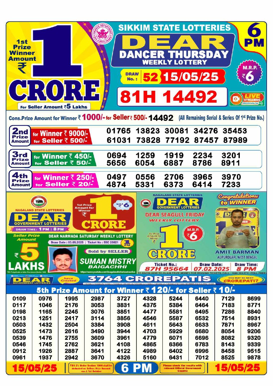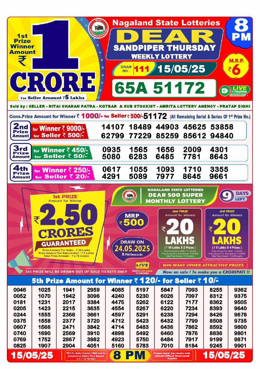- 6 PM Draw: Nagaland State Lottery Results