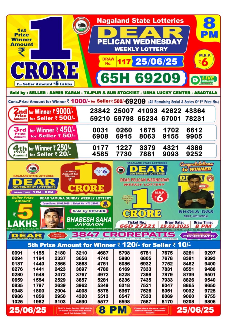 - 6 PM Draw: Nagaland State Lottery Results