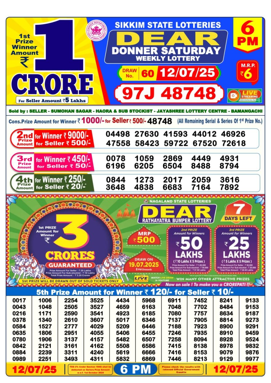 Lottery Sambad Result Today, July 12, 2025, 1 PM, 6 PM, 8 PM Draws, Live
