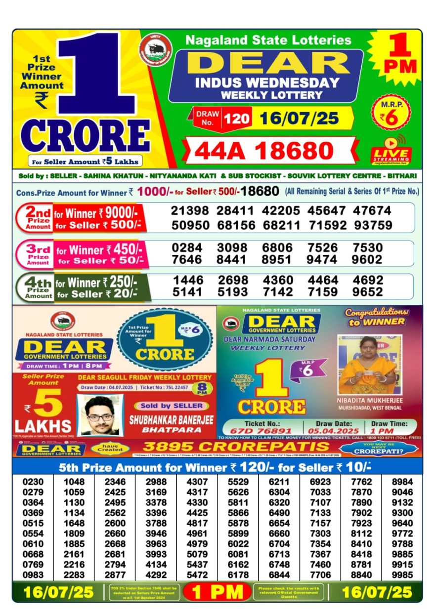 conducted by the Nagaland State Lottery. It includes daily draws at 1 PM, 6