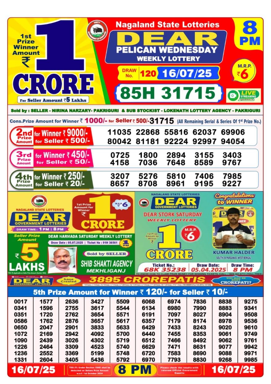 Wednesday Lottery Result 2025 – 19 PM Draw